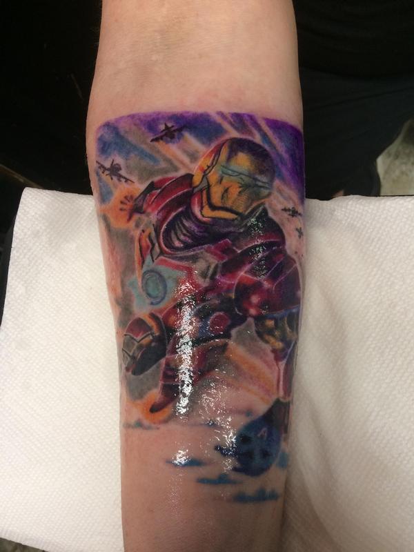 This is a very realistic tattoo on an arm of the most real character of marvel He is a regular dude, highly skilled and has a heart of a hero Great use of colors and the several tones used to achieve the perfect mix for this photo realism piece The inner arm seems to be a popular spot to place these superheroes. Marvel’s Iron Man 10 Tattoos That Even Tony Stark Would Love 10 Interesting Lines And A Unique Mix Of Colors Iron Man looks absolutely stunning in this tattoo by Luca Braidotti as 9 Color Isn't Always Necessary This tattoo proves that color isn't always necessary for this type of art as Iron. Ironman Tattoo Studio 3 likes Custom Tattoos and Body Art.