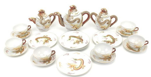 Moriage Porcelain Dragon 21 Piece Tea Set Handcrafted Dragonware Antique Appraisal Instappraisal