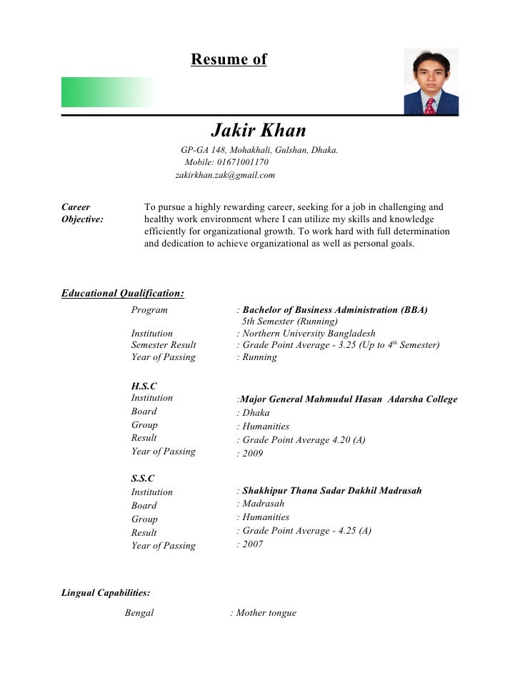 Cv Format Bangladesh Dhaka