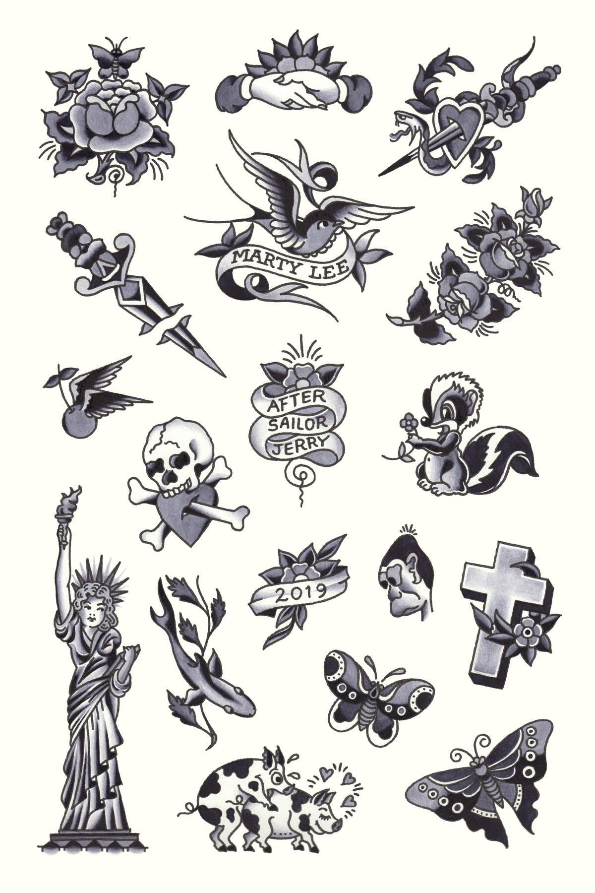 Sailor Jerry Tattoo Flash #2 Poster Print 24"x36" Free Shipping in US MarksDesignandPrints From shop MarksDesignandPrints 5 out of 5 stars (249) 249 reviews $ 3500 FREE shipping Favorite Add to Sailor Jerry Pinup 8 Page Tattoo Flash Set PostersPrintsProps From shop PostersPrintsProps. This 24 x 36 poster of a variety of Sailor Jerry Collins Tattoo Flash I did this poster for a friend of mine who owns a tattoo shop in Hollywood I wanted to show some clean versions of Sailor Jerry Flash (because there arent that many out there) while keeping some grit to it which is why I used. I didn't do anything as far as the designing goes, these are all pretty straight forward Sailor Jerry desig.