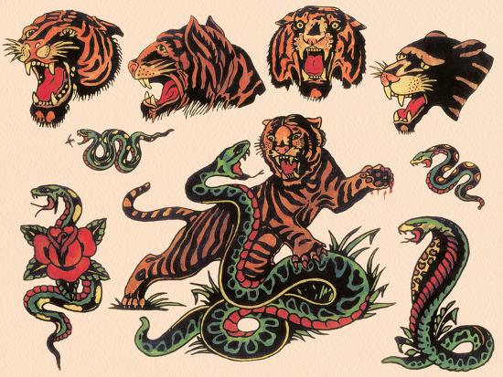 Tigers Snakes Authentic Tattoo Flash By Norman Collins Aka Sailor Jerry Art Print Piddix Art Com