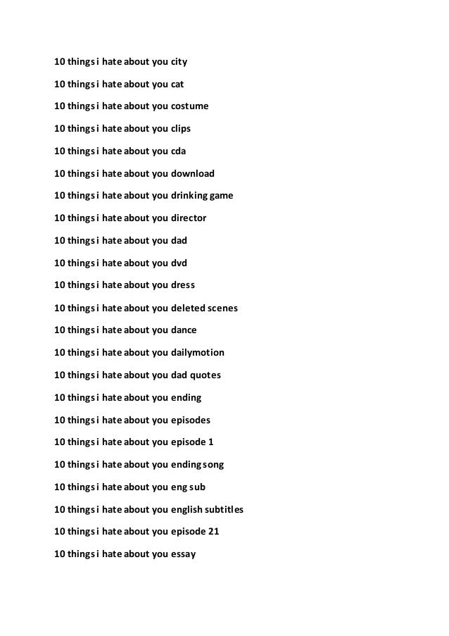 Ten Things I Hate About Me by Randa AbdelFattah 3,722 ratings, 360 average rating, 4 reviews Ten Things I Hate About Me Quotes Showing 12 of 2 “But persistent name calling?. 10 Things I Hate About You Quotes Chastity I know you can be overwhelmed, and you can be underwhelmed, but can you ever just be whelmed?. We Hate the Way We Love These 10 Things I Hate About You Quotes Is there a more iconic teen movie than 10 Things I Hate About You?.