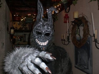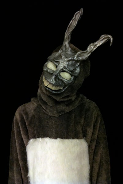I wanted to be Frank the Bunny for a long time, and finally decided to go as him for Halloween 10 The mask and the claws were sculpted out of clay, molded in silicone, and finally cast in resin They were spray painted, with details added in acrylics. A creepy costume straight from the movie, the Donnie Darko Adult Costume includes a gray bunny mask with white eyes and scary teeth and a plush bunnylooking coverall with attached gloves. Paper Magic Men's Donnie Darko Adult Frank The Bunny Costume And Mask 35 out of 5 stars 111 $139 $ 138 99 FREE Shipping Plus Size Donnie Darko Frank The Bunny Costume 50 out of 5 stars 2 $ $ 114 99 $749 shipping Frank Rabbit Mask Bunny Fullhead Cosplay Props for Adult Halloween Grey.