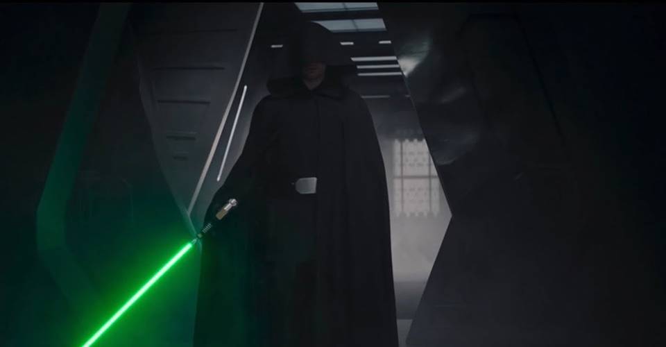 The Mandalorian filmed the opening of its own hallway lightsaber battle much the same way—with Luke drawing his lightsaber facing the camera and after exiting a doorway—the sequence made to overlay.